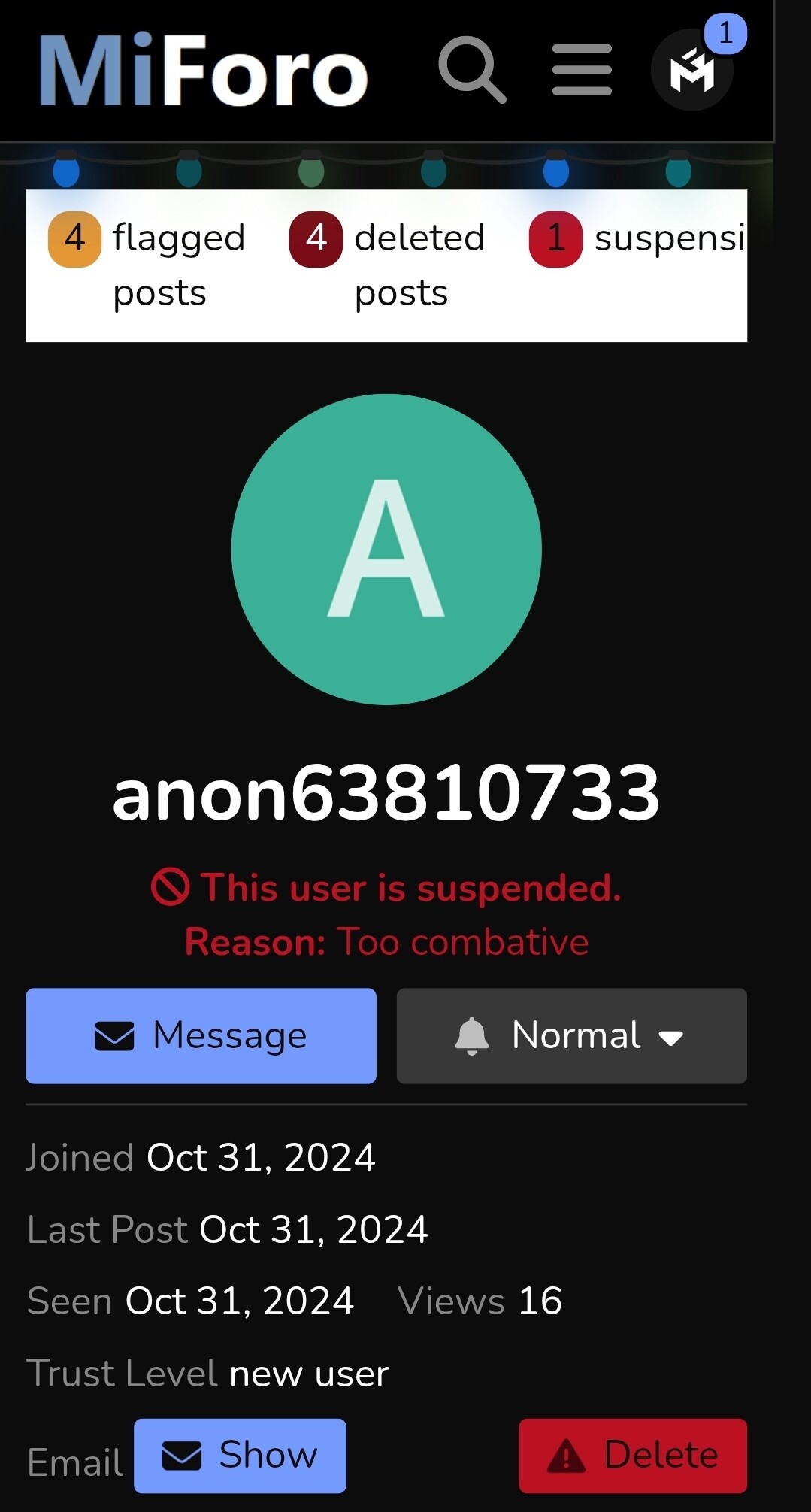 También, sin embargo los @moderadores podemos acceder a mensajes públicos y privados que hayan sido eliminados por el usuario, estos aparecen en el perfil del usuario y solo nosotros los @moderadores tenemos acceso a estos.
