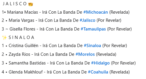 Alejandra Hernández, Glenda Maklouf #Coahuila, Arisbe Cueto #NuevoLeón, Genesis Vera #Veracruz , Ximena Aranda #Tabasco![]()
