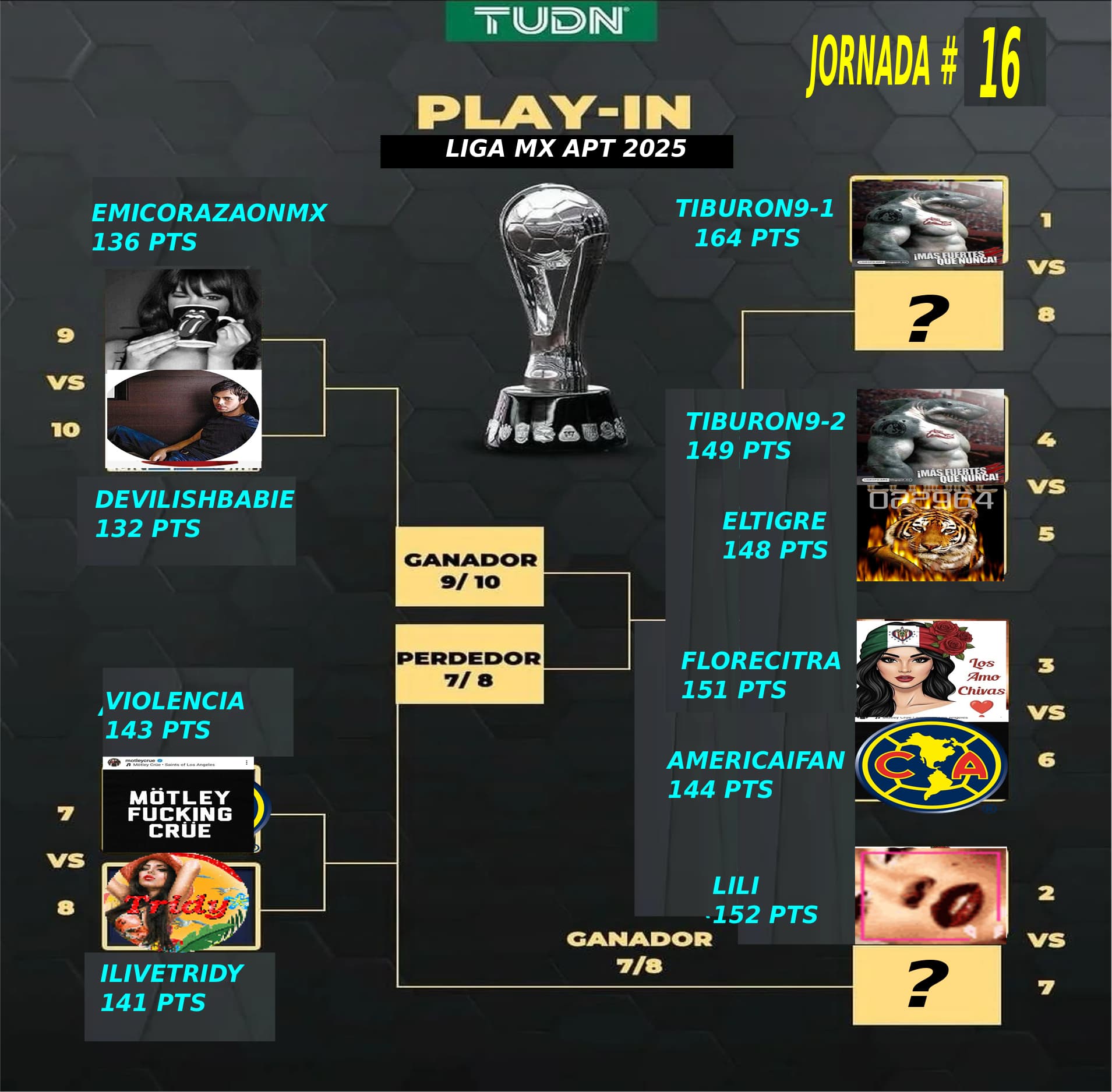 FALTA LA JORNADA 17 ASI QUE SE VIENE OTRO CAMBIO EN LAS LLAVES Y EL DEFINITIVO PARA ESTAR EN LA FIESTA GRANDE