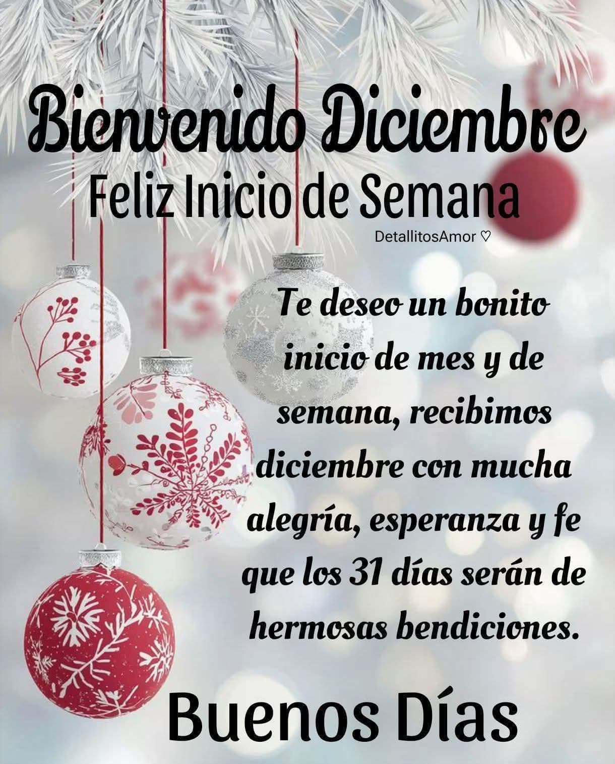 Les deseo que estos 31 dias sean llenos de bendiciones para cada uno de ustedes, que haya Alegría, paz, amor y sobre todo que gocemos de muy buena salud para poder disfrutar de las fiestas Decembrinas.