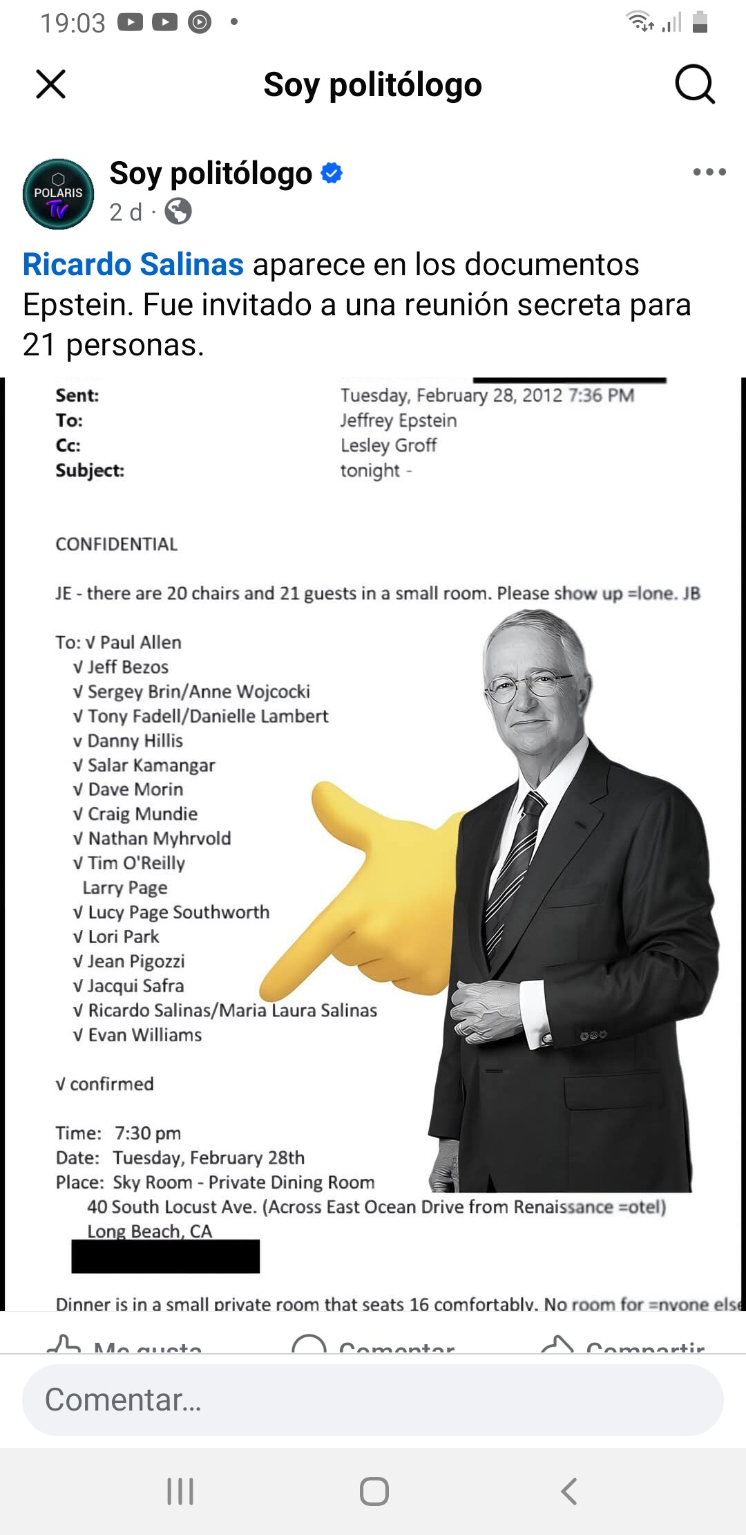 Carlos Salinas de Gortari y Ricardo Salinas Pliego tambien aparecen en la lista de Epstein. Y la derecha méxicana esta calladita. Los medios de descomunicación convencional no lo estan informando, los méxicanos nos hemos por medio de las redes sociales.
