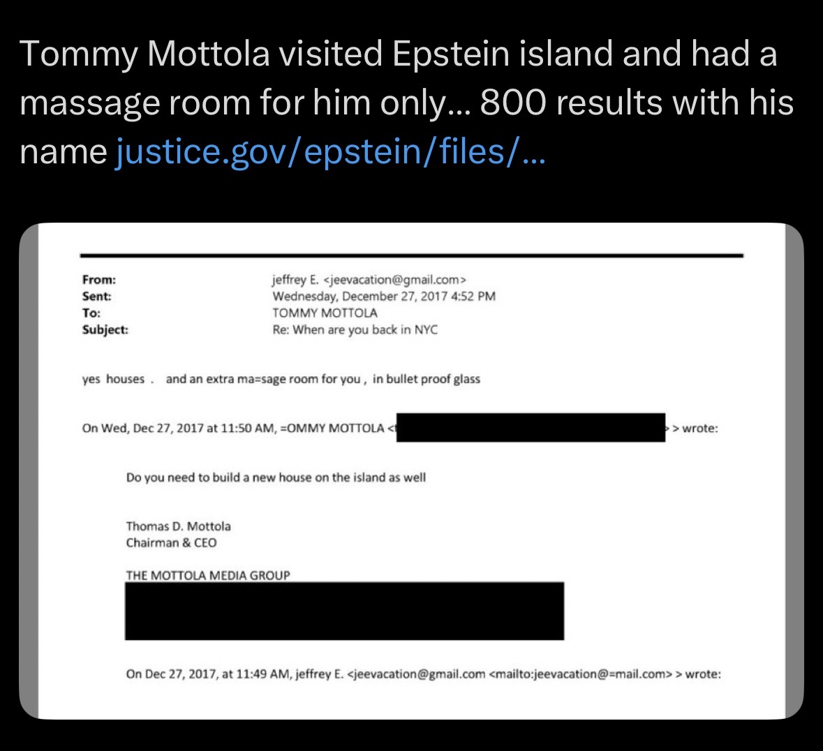 Están saliendo más cosas sobre la conexión de Tommy con Epstein, aparentemente Epstein quería que Tommy estuviera encargado de algo con Cuba. Que pensarían Emilio y Gloria de esto?