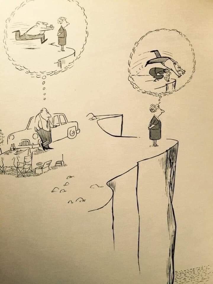 a una linda señora desvistiéndose, se quedan mirando embobados,