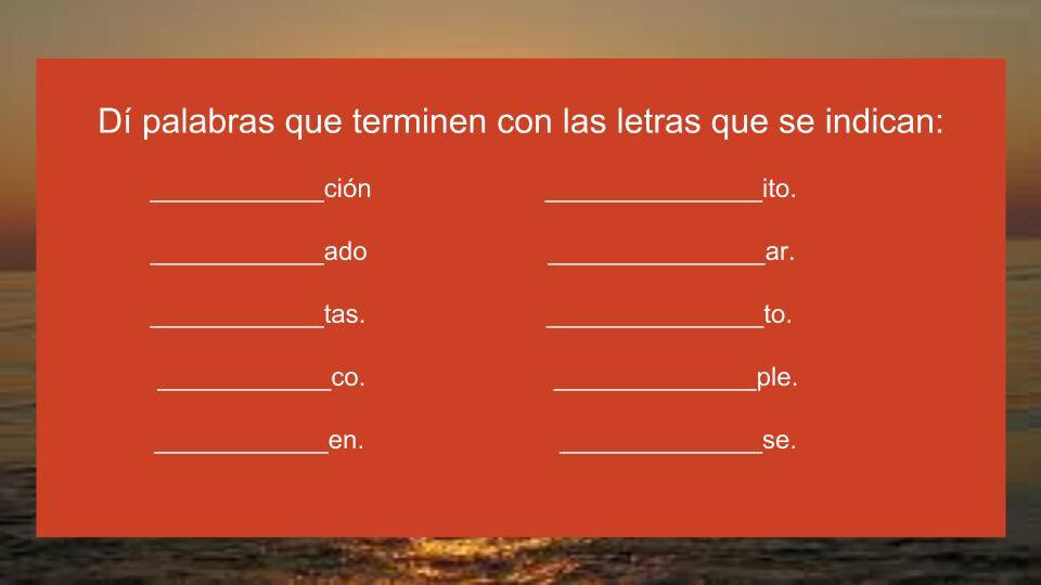 Gracias Nikita todas las palabras son vlidas si terminana con las letras que se indica linda tarde