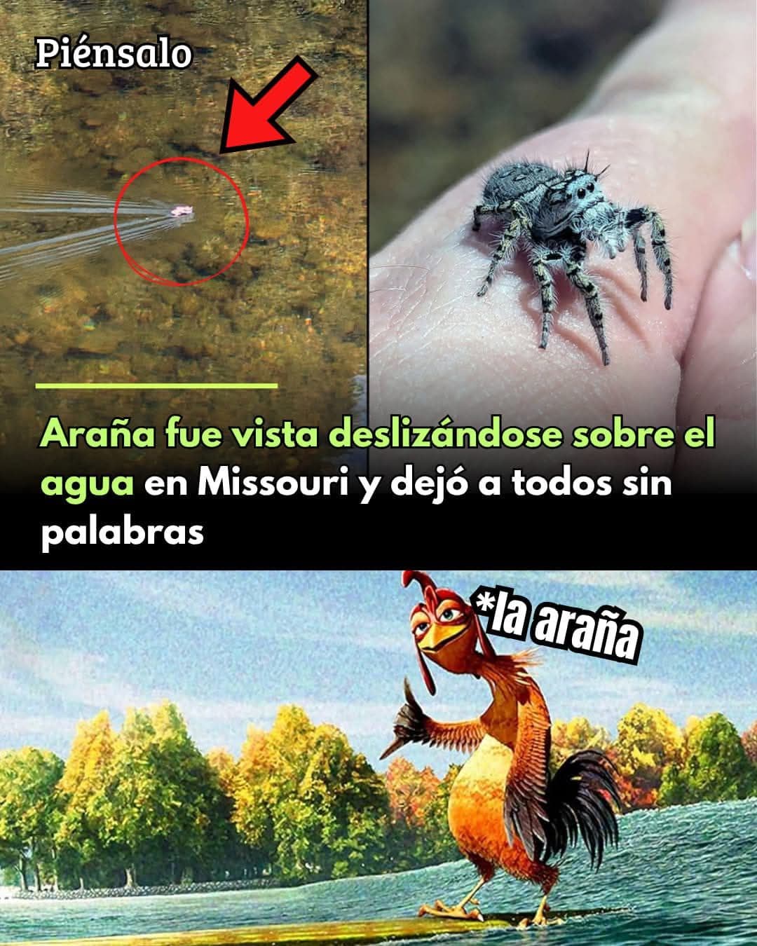 Un kayakista vivió una escena digna de una película cuando, en medio del arroyo Huzzah Creek, una araña “surfeando” sobre el agua apareció frente a su bote.