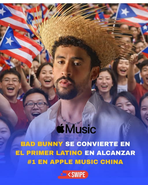 Bad Bunny, nuestro Benito de Vega Baja, acaba de hacer HISTORIA: se convierte en el primer artista latino (y el primer álbum completamente en español) en alcanzar el #1 en Apple Music China con su álbum “DeBÍ TiRAR MáS FOToS”.