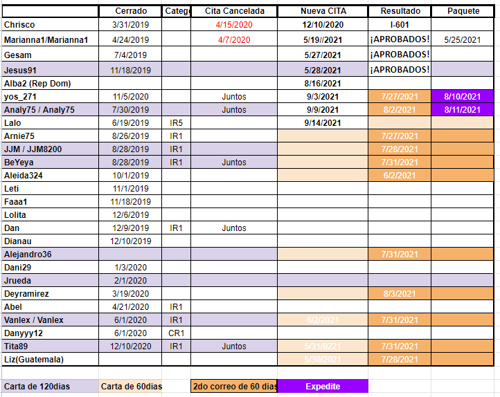 Hola buenos días @BeYeya Bendito Dios ayer nos aviso nuestro abogado que llego la cita para el 14 de septiembre aun no me ha mandado el correo, entre a la pagina pero no aparecen los datos de la cita, paciencia y mucho éxito a todos, ya un poco nervioso por la cita. Saludos!