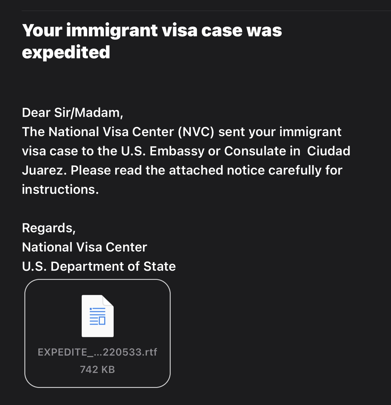 @Analy75 le llego el correo el 8/11 para el 23 ya sabia que su CITA era el 9/9 ya en Ciudad Juárez