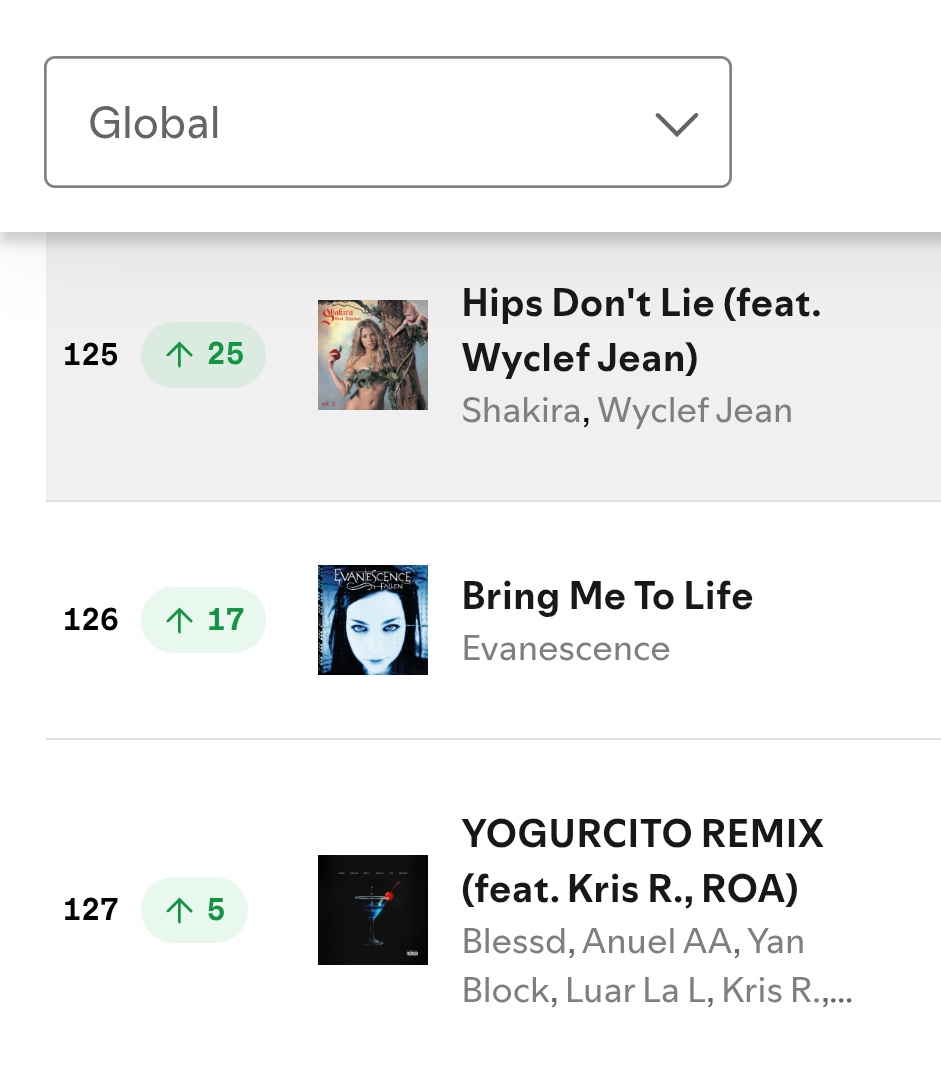 Ni modo que te escupa con sus abortos actuales, Kworb no tiene registro de esas mierdas. ![]()
