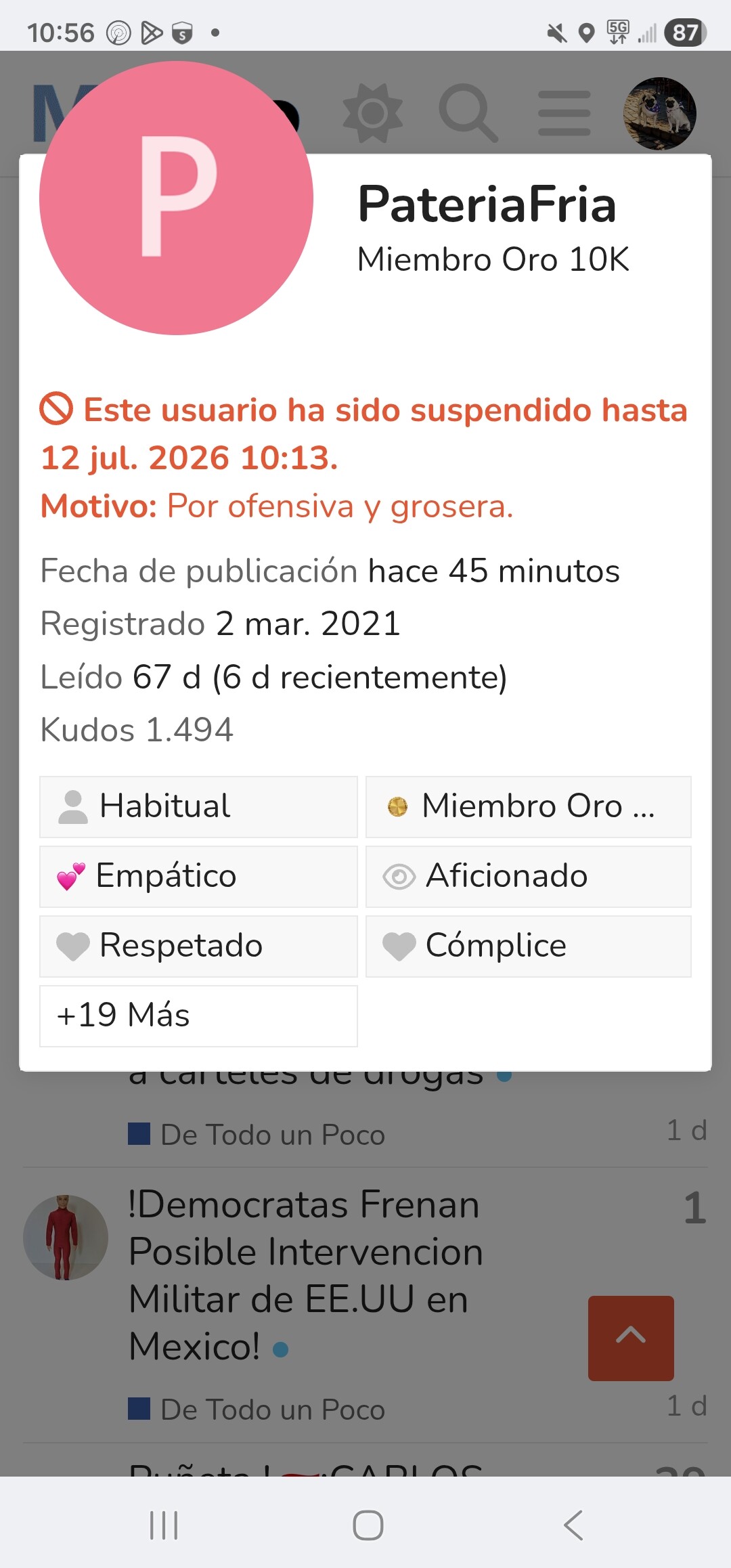Ayer me fui a la cama y no la vi entrar…andaba celebrando sus 78 abriles…hoy entré pero tampoco la vi, ni entró a agradecer en mi tema…asi que me fui a su perfil a ver cuando habia enteado y zas que veo semejante decisión de los administradores