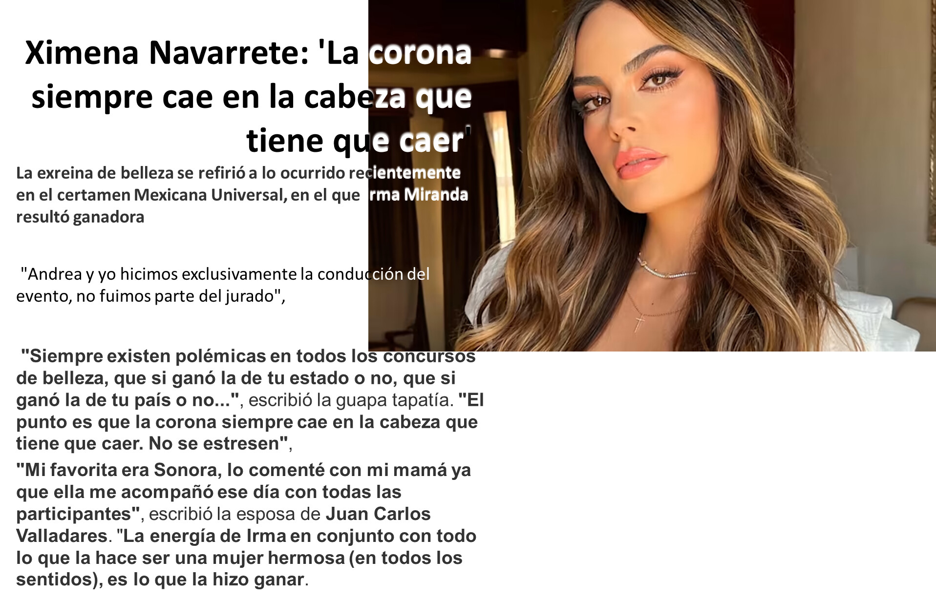 IRMA , POR LO QUE VEO, NO LLENO LAS ESPECTATIVAS DE TODOS, COMO PASA CON CADA REINA EN CADA EDICION, ESO NO SORPRENDE.