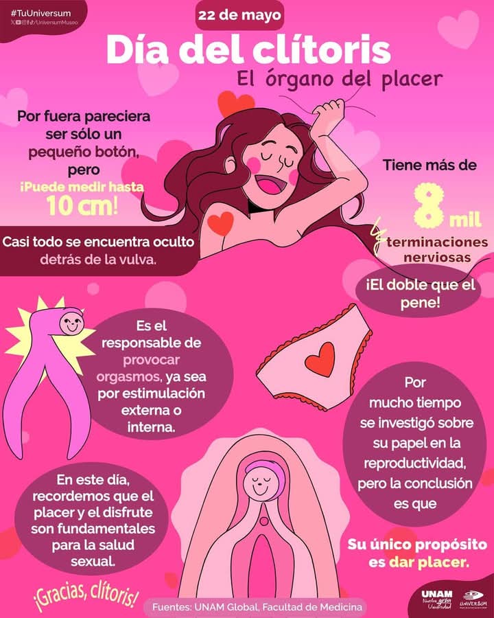 El Día del Clítoris, o Día Internacional por la Autoconciencia del Clítoris, se celebra el 22 de mayo. Para visibilizar este órgano sexual femenino y su importancia para el placer.
