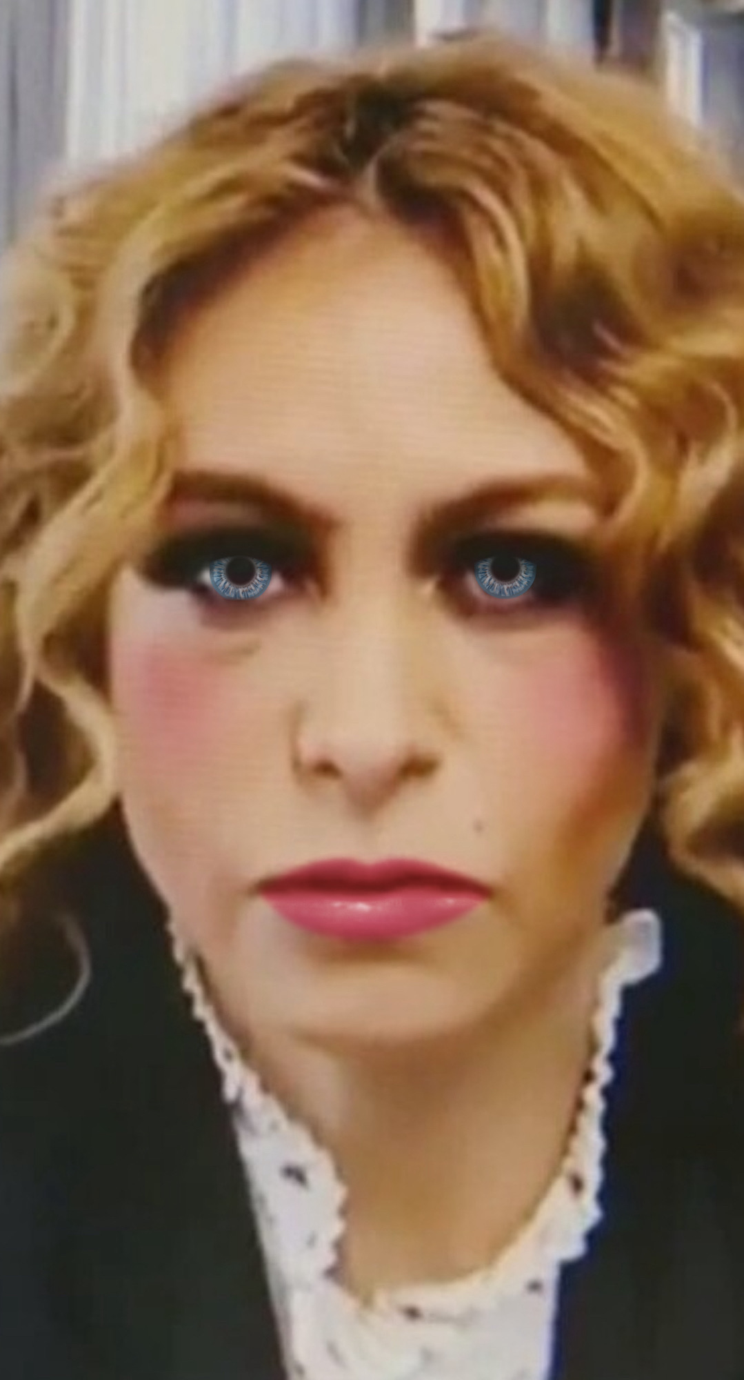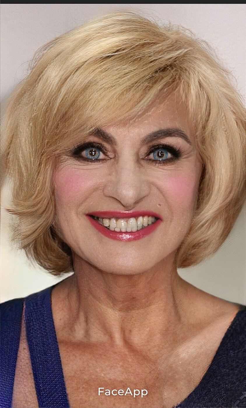 Que mal luce de rubia.. mega chola y la hace ver mas anciana