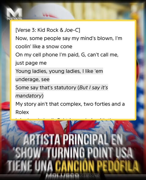 Los usuarios de Internet han sacado a relucir la letra de la canción ‘Cool Daddy Cool’ de Kid Rock donde habla que le gustan las mujeres menores de edad.