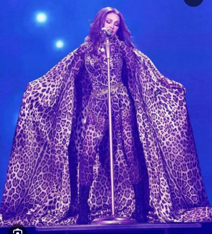 La gloria siempre obsesionada con thalis ese vestuario Thalia lo uso cuando canto en los billboard 2023 obviamente Thalia en perra dolce & gabana y la glow en corriente jejeje