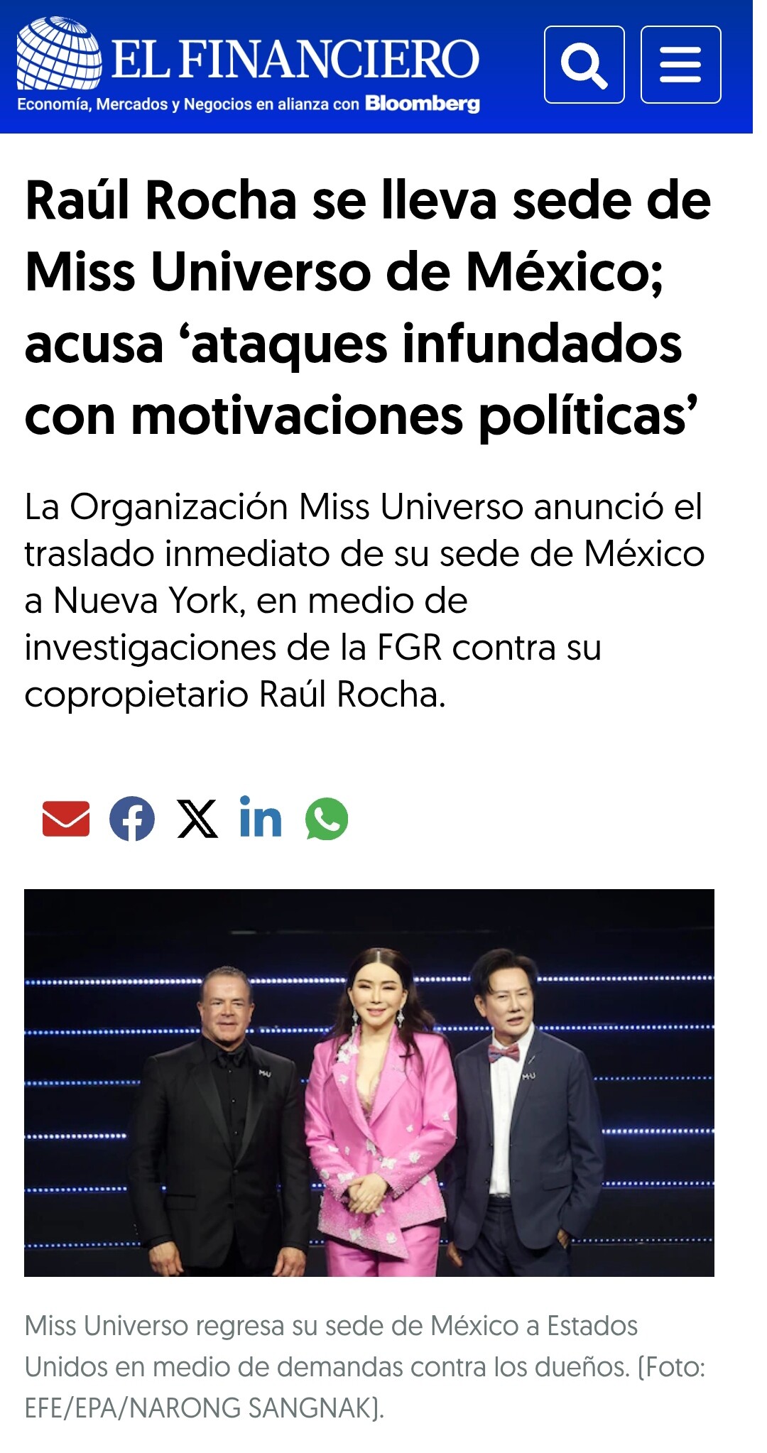 PUES QUE YA SE HACIAN CASI DUEÑOS DE MISS UNIVERSO AL DECIR QUE NO QUIEREN AL ROCHA EN LA ORGANIZACIÓN, PERO MIENTRAS NO LE COMPRUEBEN NADA, PUES DINERITO HABLA MIMA