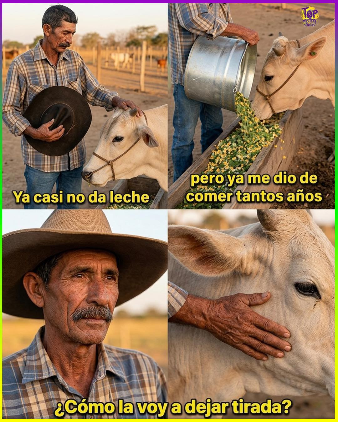 Esa vaca había sido su sustento durante años. De ella salió comida, estabilidad y momentos en los que más lo necesitó. Por eso, cuando llegó el momento difícil, decidió quedarse… no por lo que daba ahora, sino por todo lo que ya le había dado. Y siguió cuidándola, como siempre.