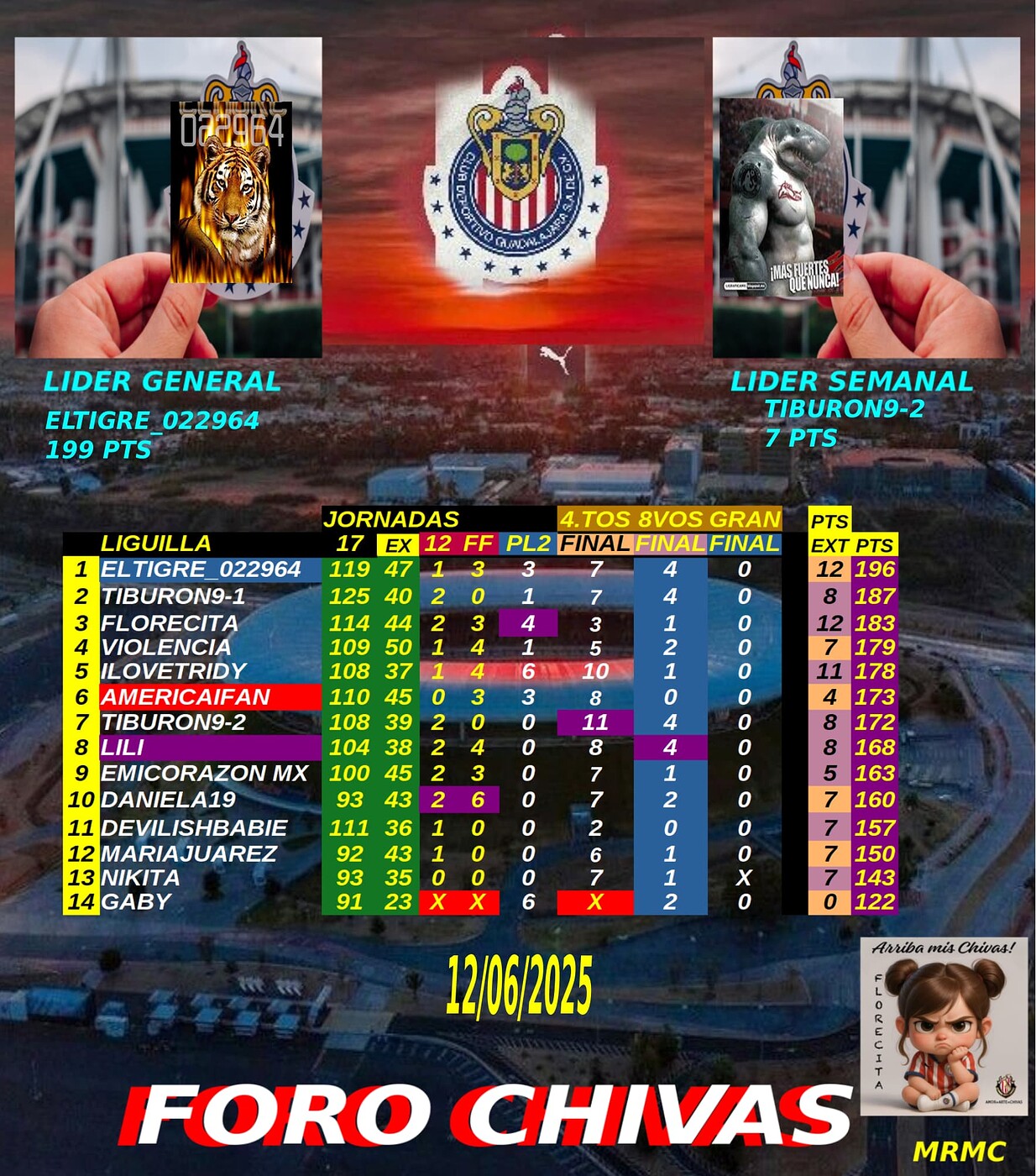 Lider de la semana: Mr Tiburon de nuevo es el mero mero de la semana @Tiburon_9