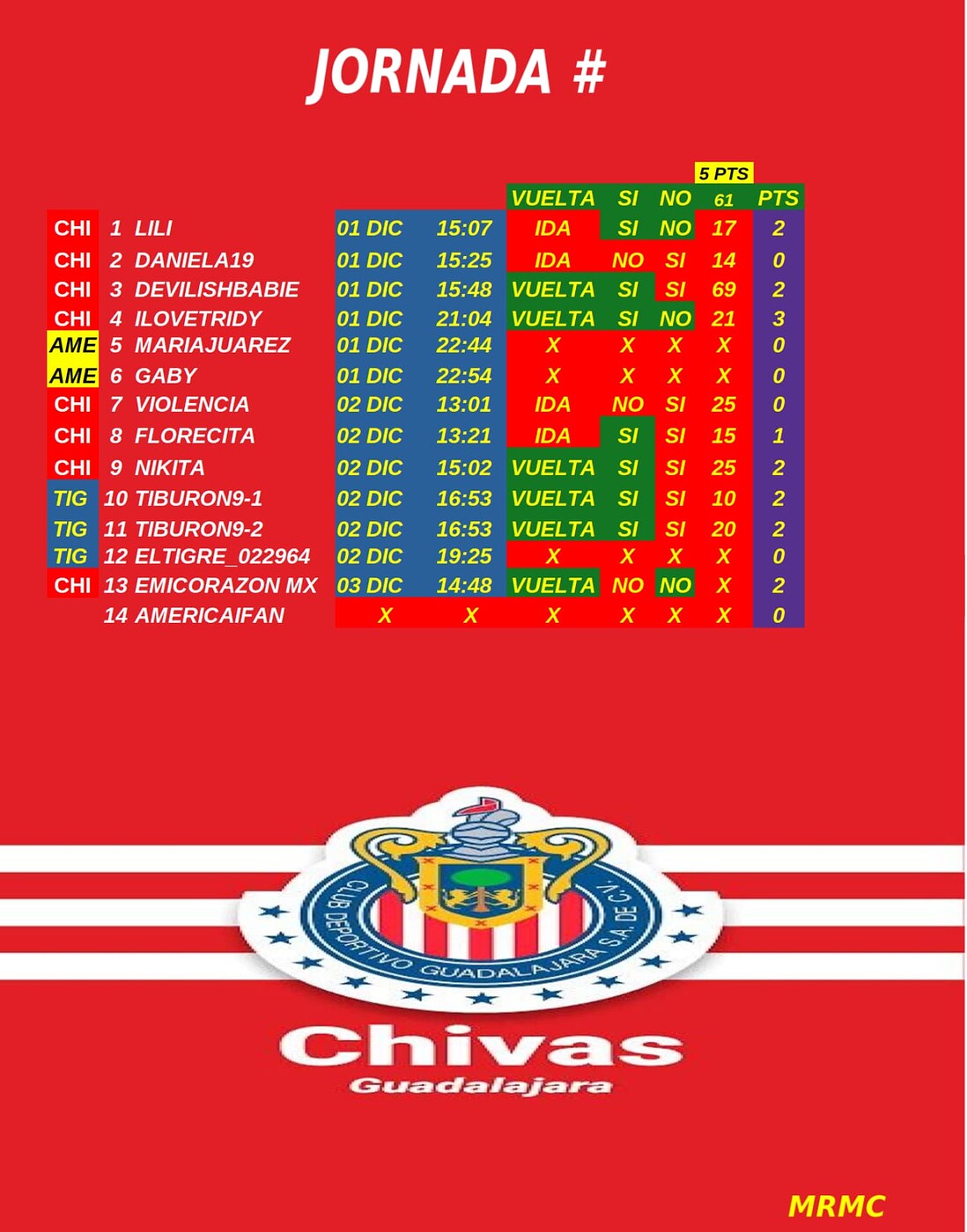 Oyesss amiguisss… desde q empezo el torneo nadie te quito tu lugar… siempre firme en el 12 ![]()