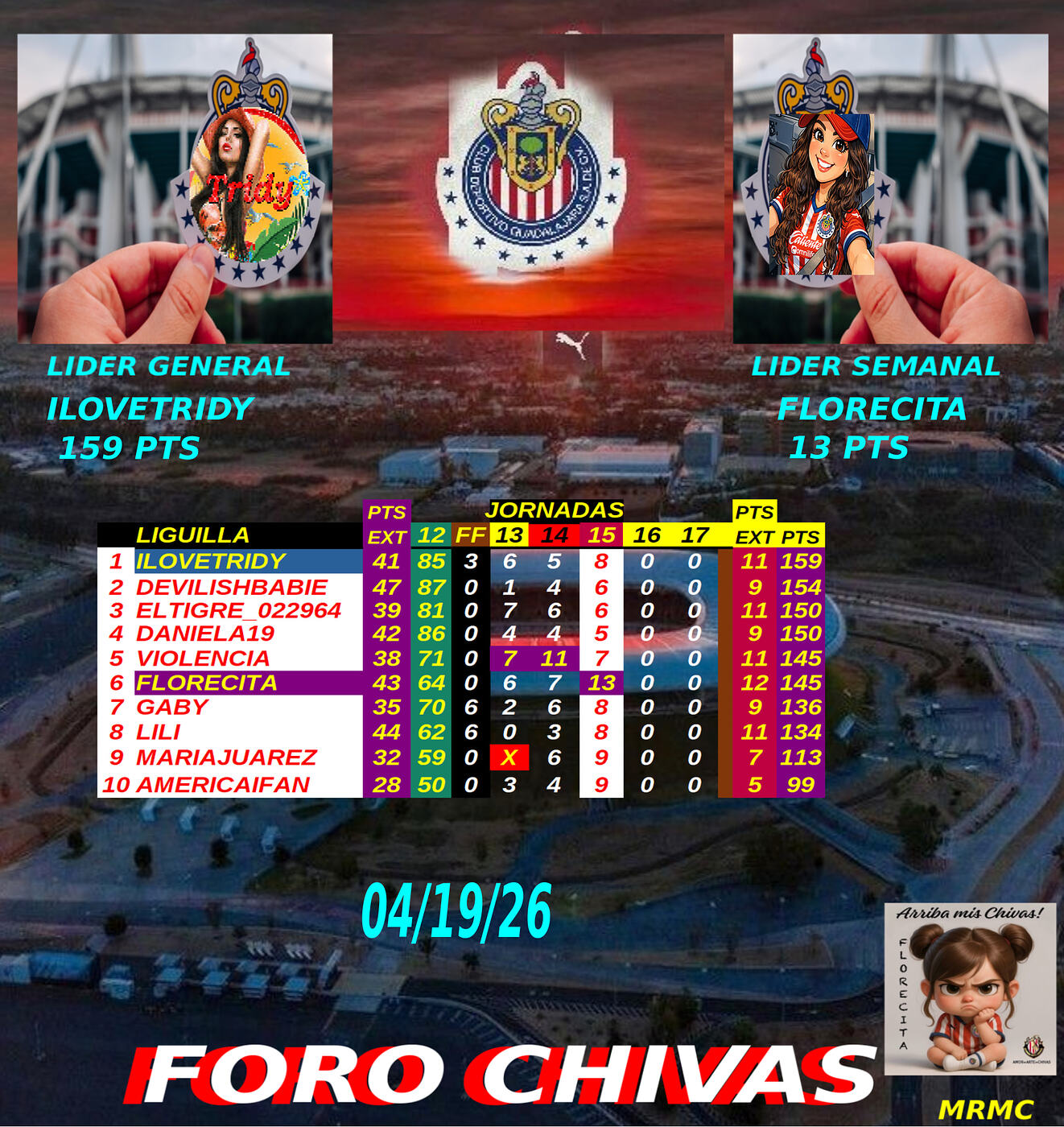 Gracias por los resultados paisana y felicidades por ser la mera mera esta semana y a mi ciela @ILOVETRIDY por ser la mera mera general.