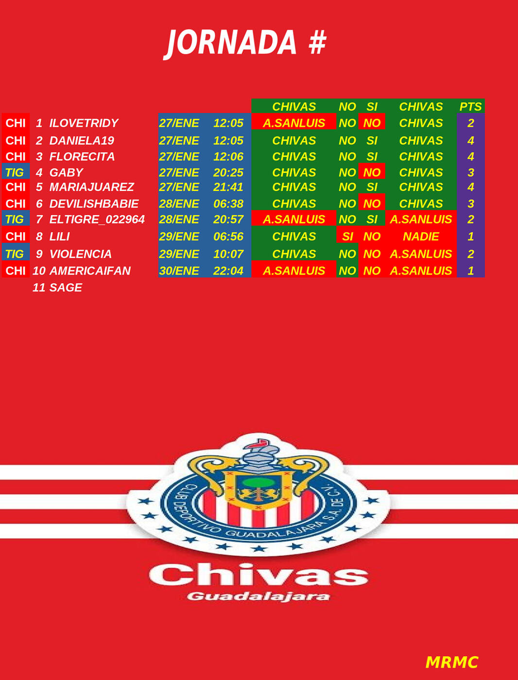 Solo 3 puntos hice.. yikes. Gracias por los resultados. Felicidades a las ganadoras.