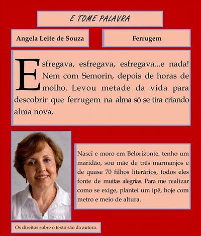 Nací y vivo en Belorizonte, tengo esposo, soy madre de tres hombres adultos y casi 70 hijos literatos…