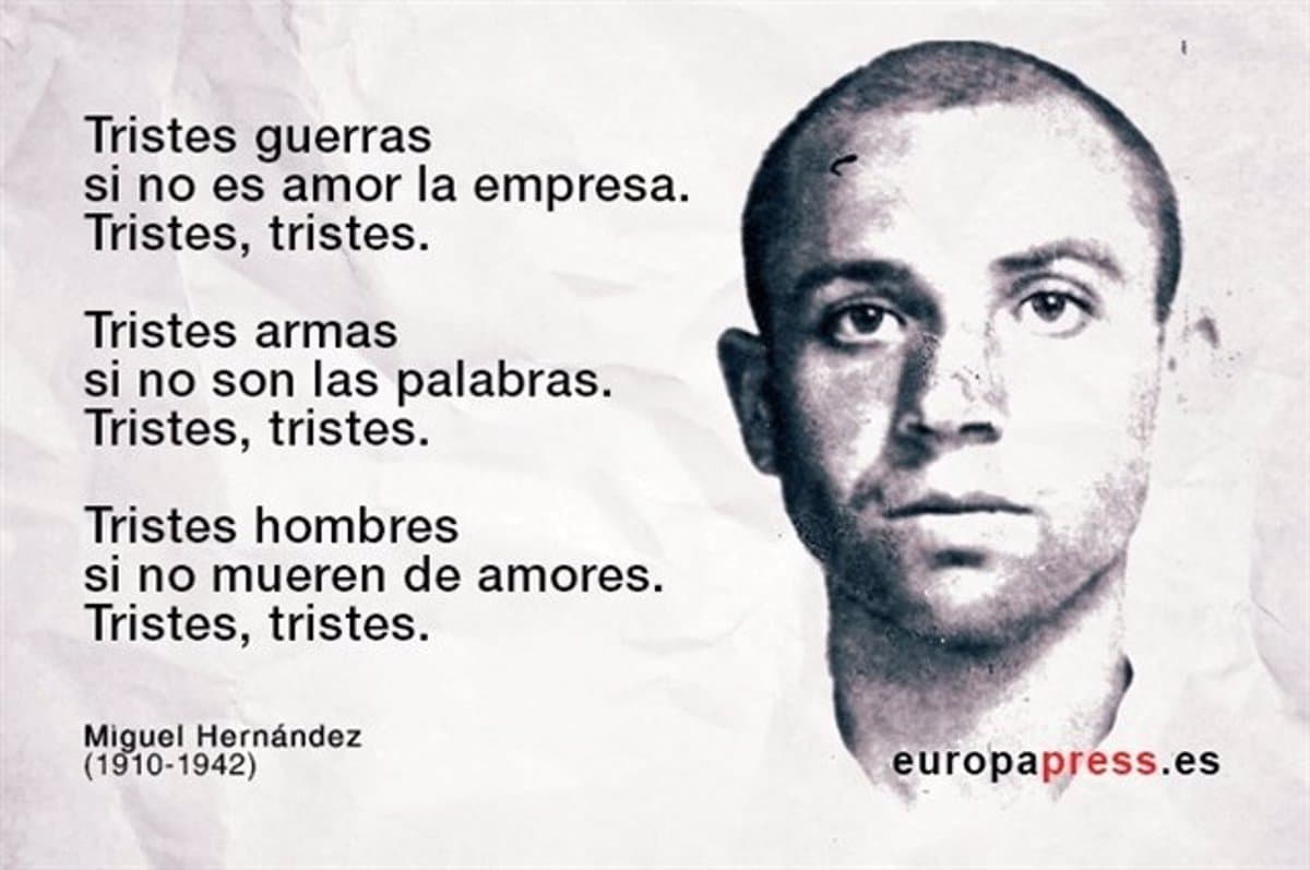 El poema ‘Tristes guerras’, es un alegato contra los conflictos armadosLas guerras y las armas son tristeza y desolación. El hombre también es triste si no se dedica a lo realmente importante: amar.