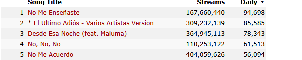 En spotify hace diario lo que hace NO ME ACUERDO, 50K.
