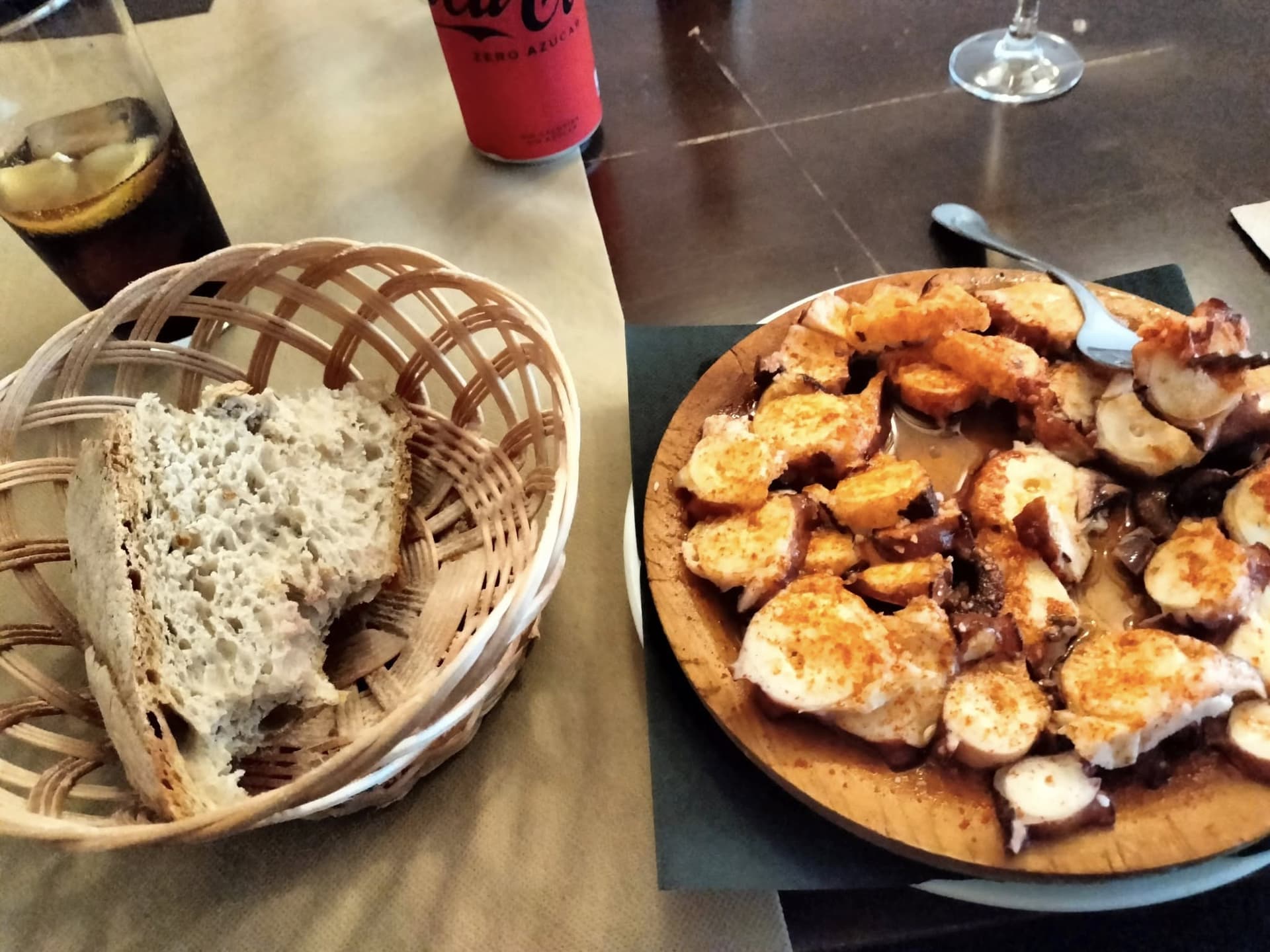 El mejor pulpo a la gallega se come en Galicia, en esa tabla y con mucho pimentón y ese pan broa?