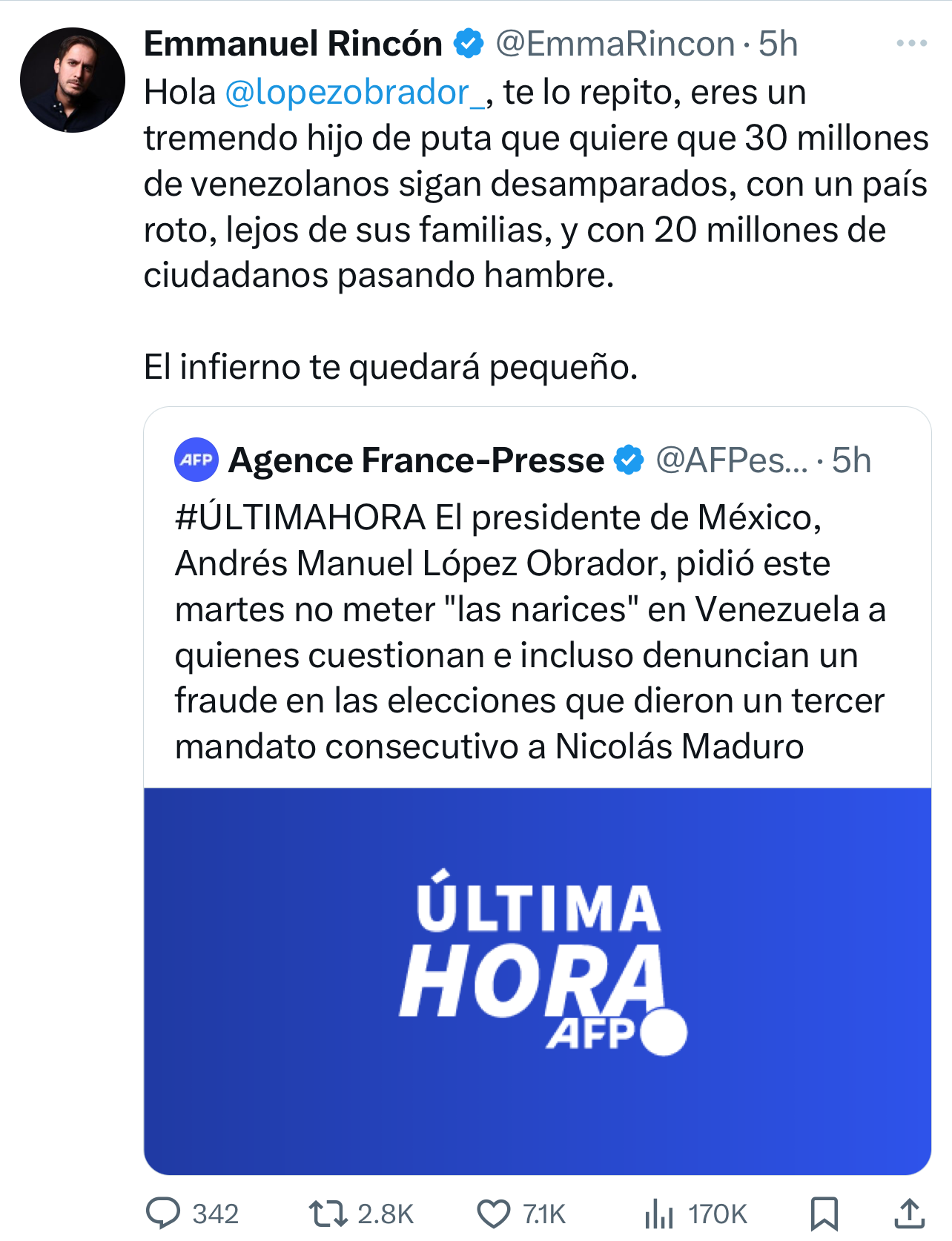 Saludos @lajusticiera ,Mexico va por el mismo camino de venezuela,tambien en mexico esta pasando lo mismo,por esa razon defienden a maduro,pero dejame decirte que ahora para mi que todo fue un descaro por parte del gobierno venezolado,esta vez no hay duda que algo grande paso…