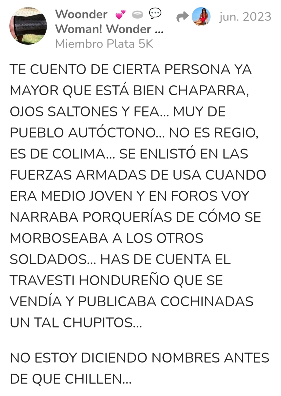 Pues ya ves chulis quieres hacer lo que plazca en todos los foros pero para eso hay moderadores, para ponerte tu estate quieta cuando andas de conflictiva e inventándole vidas a los demas..