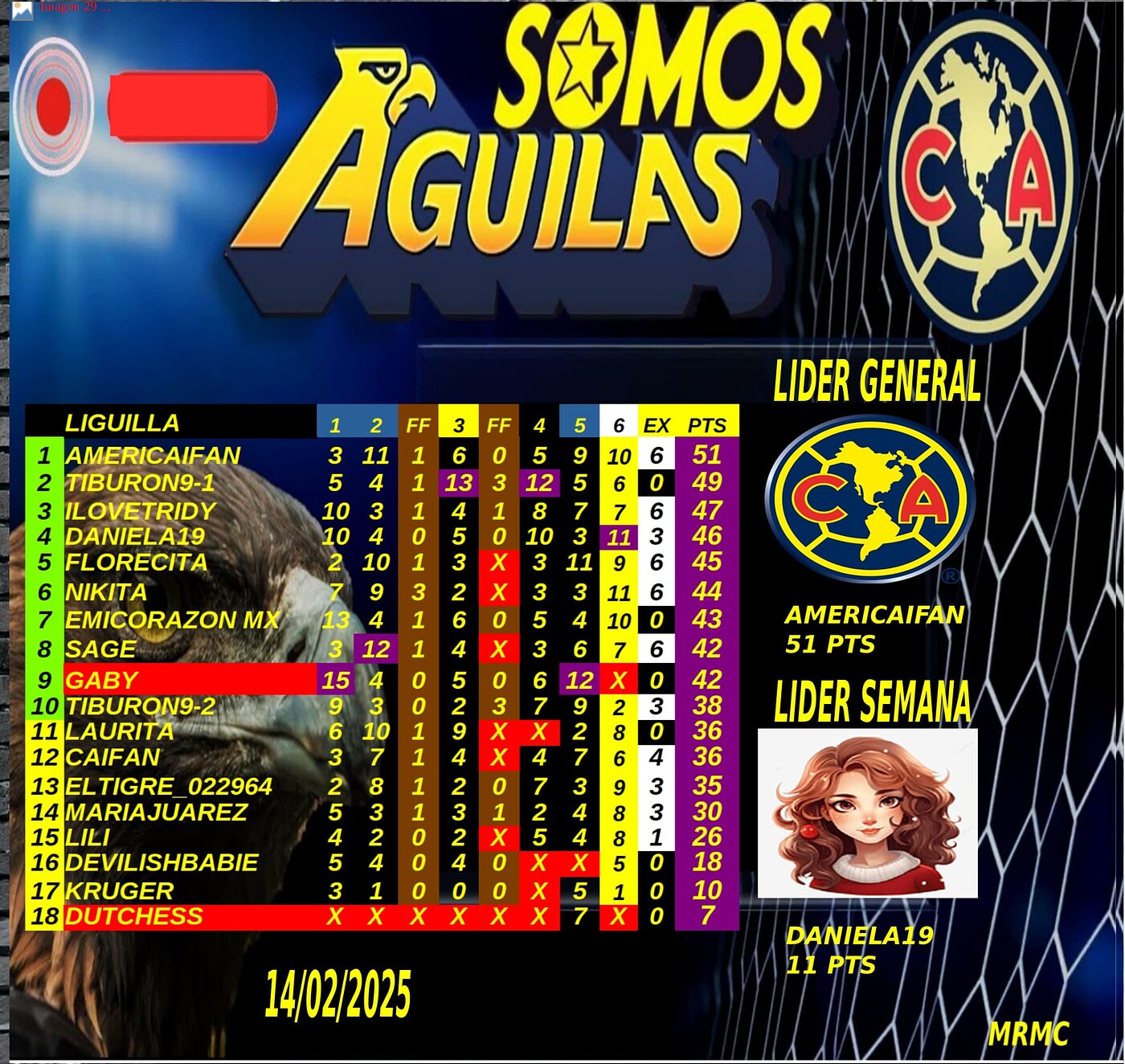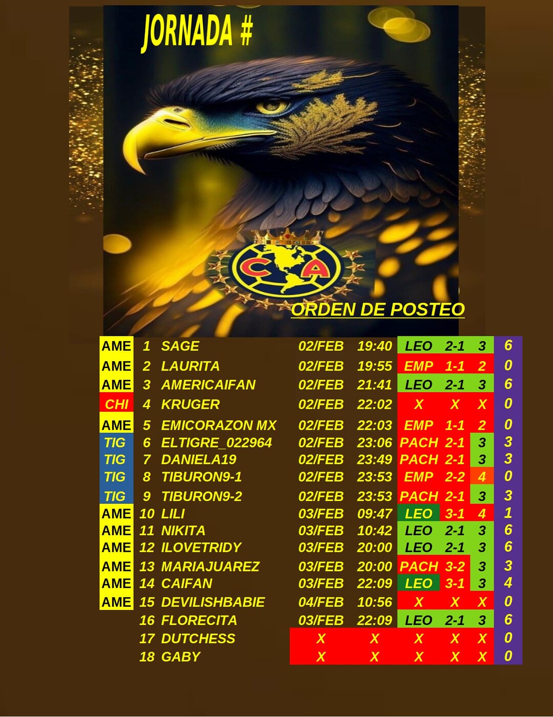 Gracias por participar en la Liga Mex '25 del foro America, si ven algún error o tienen alguna duda por favor avisen para resolverlo, los resultados de esta jornada son los siguientes: