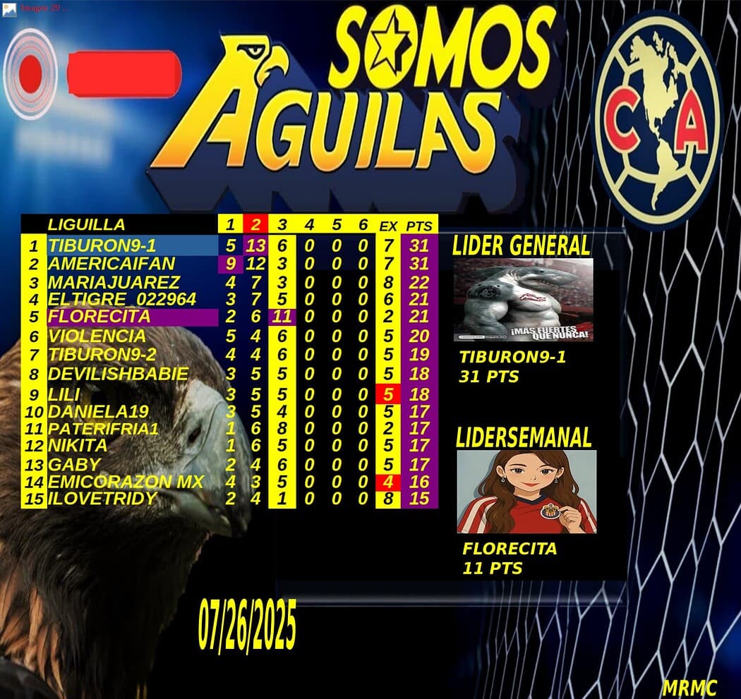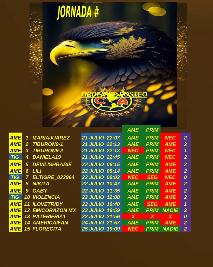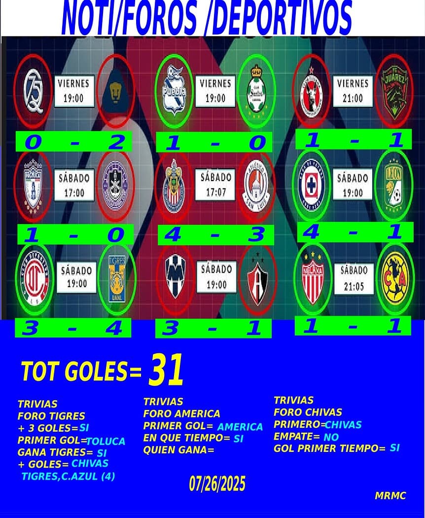 Gracias por participar en la Liga Mx '25 del foro America, si ven algún error o tienen alguna duda por favor avisen para resolverlo, los resultados de esta jornada son los siguientes: