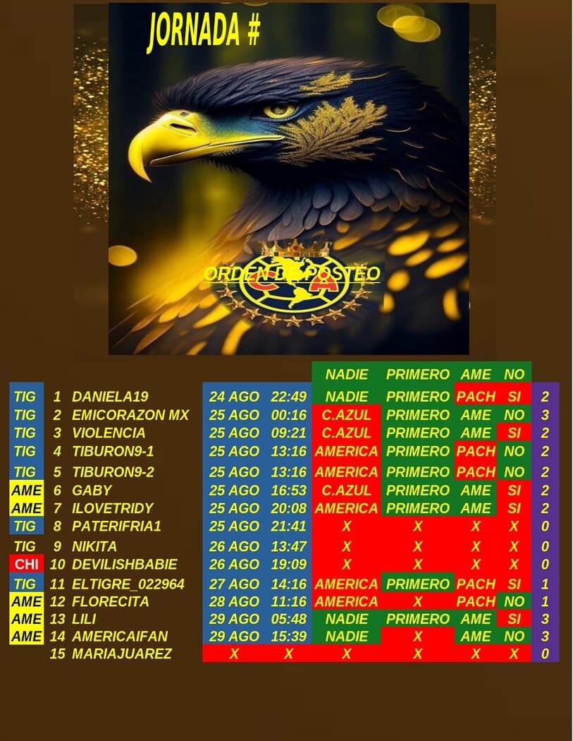 Gracias por participar en la Liga Mx '25 del foro America, si ven algún error o tienen alguna duda por favor avisen para resolverlo, los resultados de esta jornada son los siguientes: