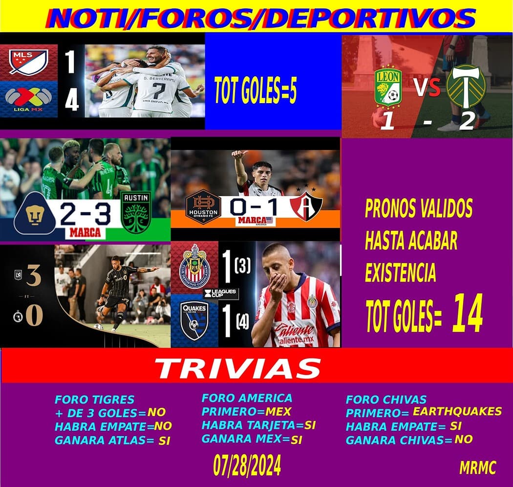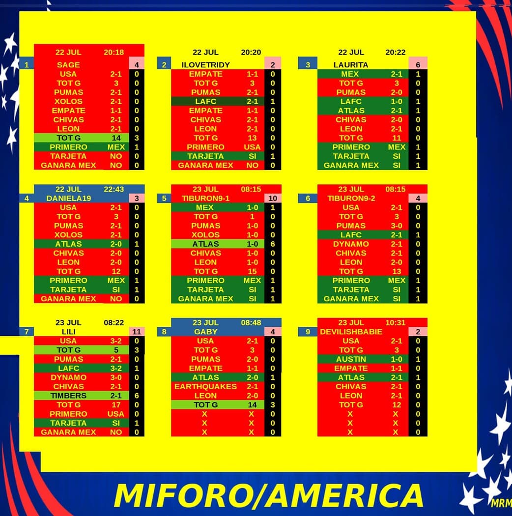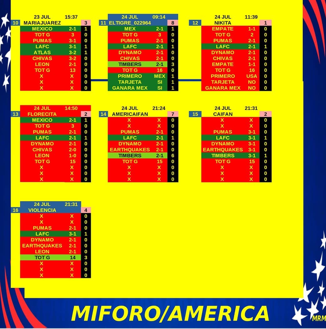 Gracias por participar en la Liga Mex '24 del foro America, si ven algún error o tienen alguna duda por favor avisen para resolverlo, los resultados de esta jornada son los siguientes: