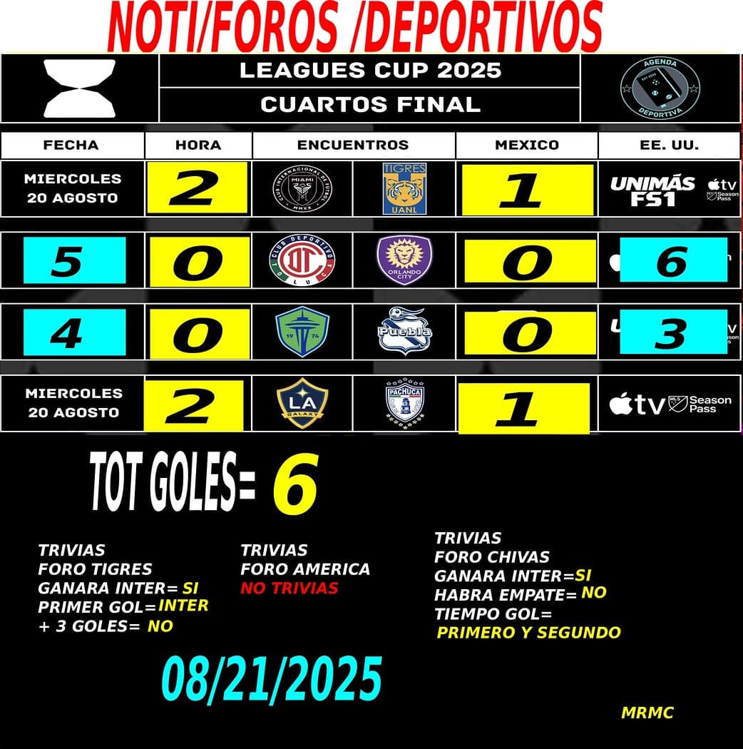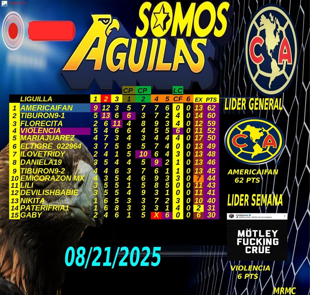 Gracias por participar en la Liga Mx '25 del foro America, si ven algún error o tienen alguna duda por favor avisen para resolverlo, los resultados de esta jornada son los siguientes: