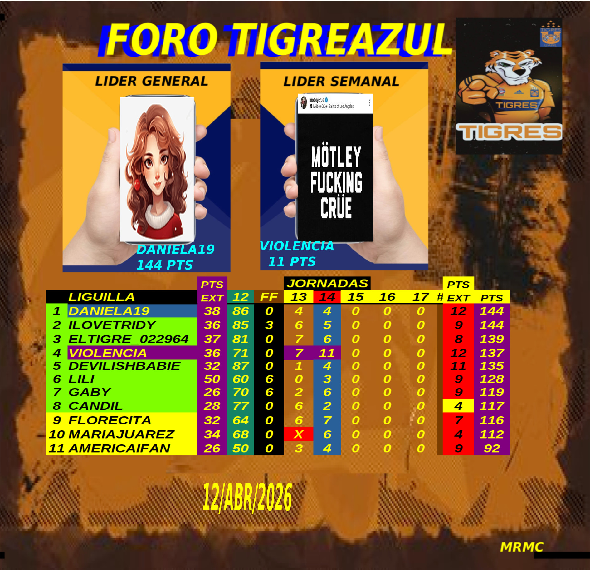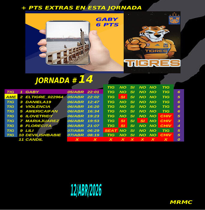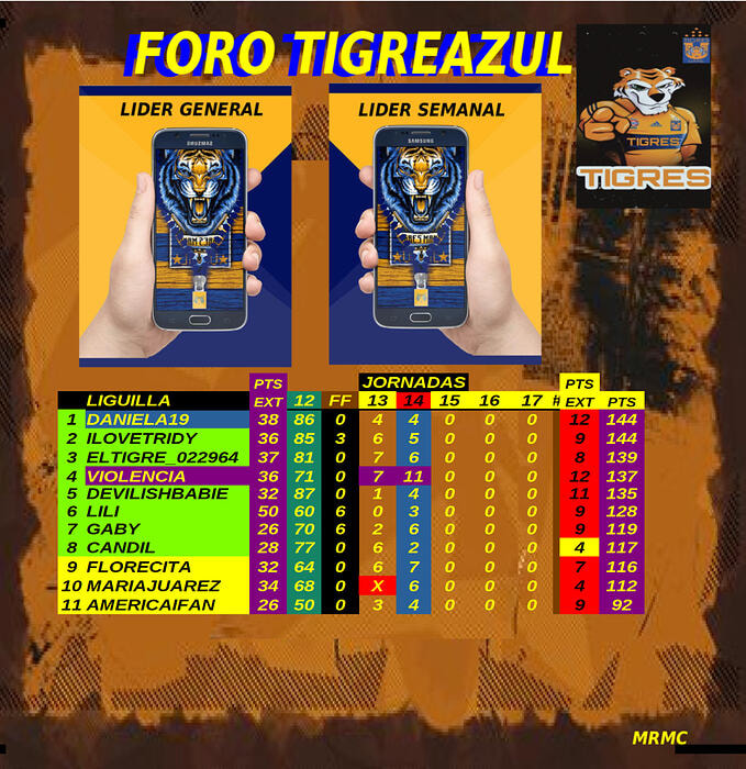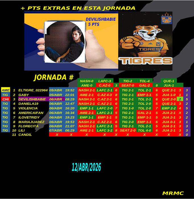 Muchas felicidades al primo @eltigre por ser el ganador semanal y general de esta jornada.