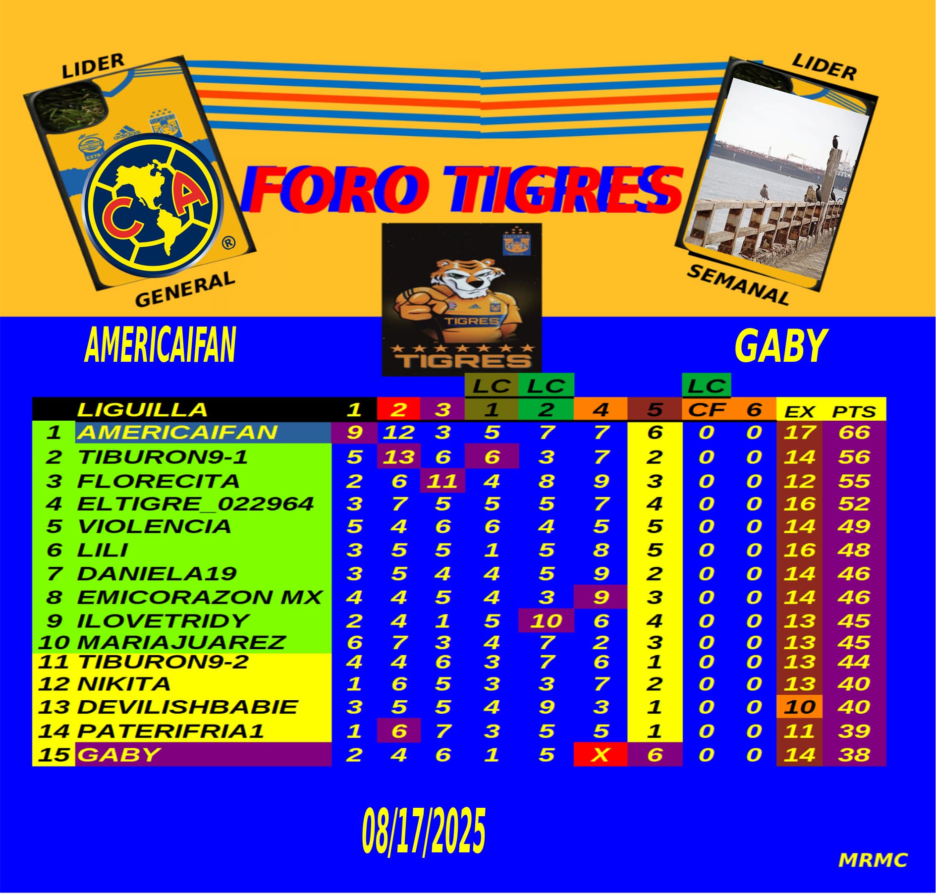 Felicidades a @Americaifan por ser líder general y a @Gaby por ser líder de la semana!!
