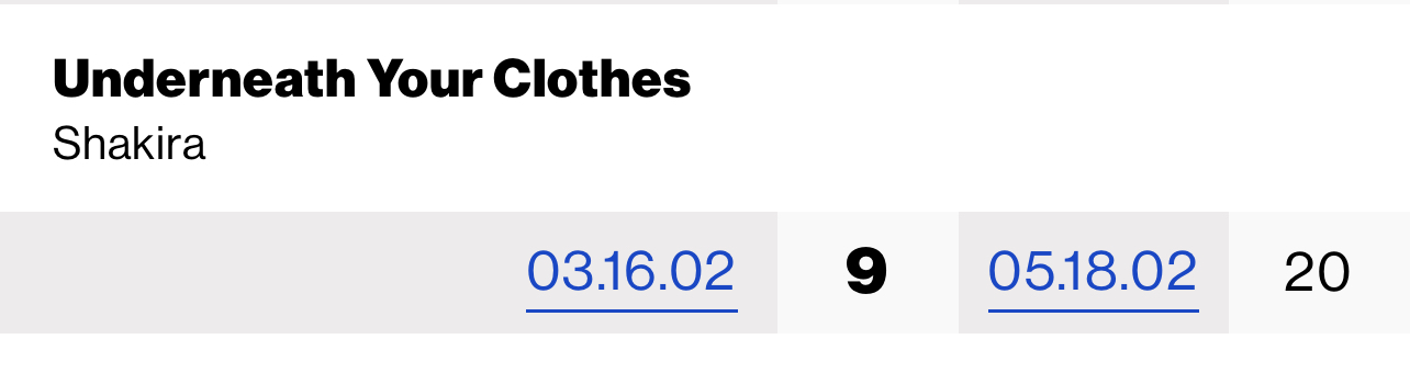 Último HIT en SOLITARIO (top 10) 2002 UYC, o sea, hace casi 24 PERROS AÑOS.