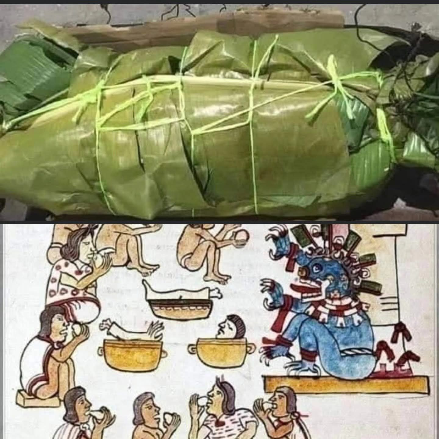 Para este proceso envolvieron el cuerpo con masa martajada y enchilada, la cual molieron en metate, cubriéndolo después con hojas de la planta de plátano y papatla, después lo metieron en un hoyo enorme en la tierra donde lo llenaron de piedras y lo cubrieron con brasas, cuenta el cronista de Pánuco Veracruz, Luis Enrique Pérez.