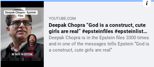 Deepok Chopra El dijo " Dios es una construccion Humana, Las Chicas son reales" fijate Este Jijo de perra estaba involucrado, como Lo esta Medio Mundo con Epstein.