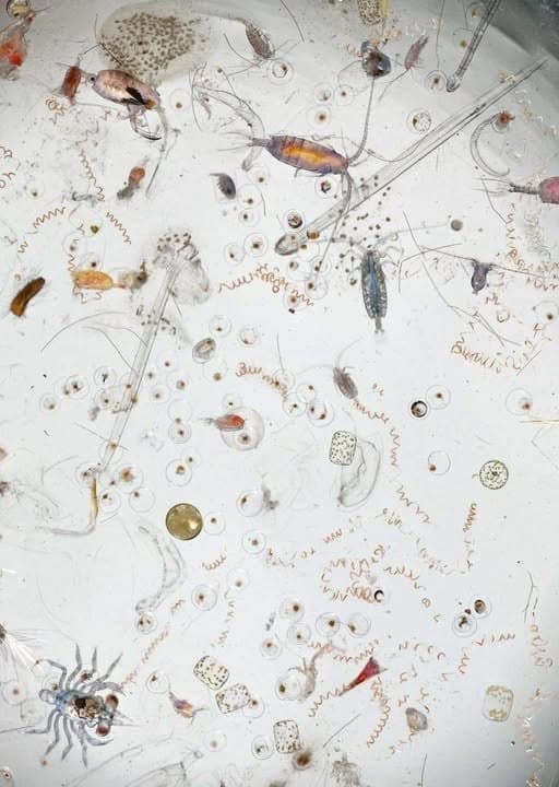Esta imagen muestra la microfauna que existe dentro de una sola gota de agua de mar, magnificada 25 veces.