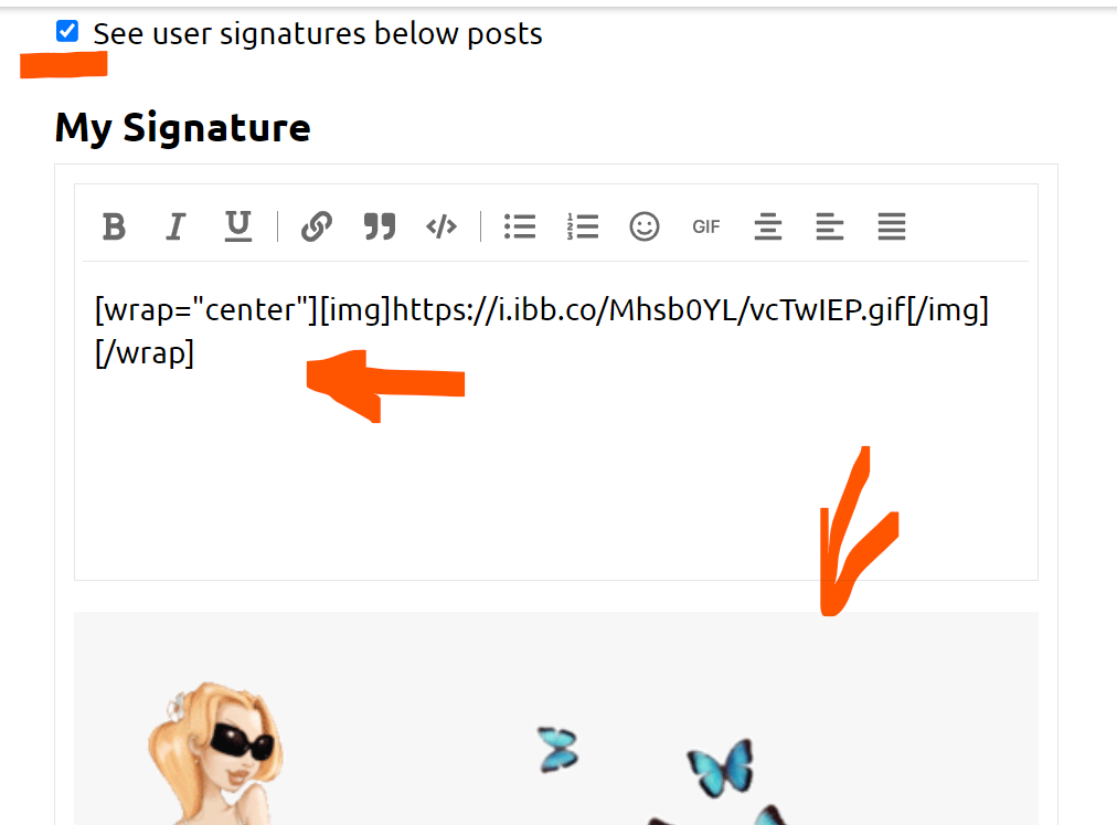 Si es la nueva forma de poner la firma como si fuera un mensaje normal, una vez que pongas el codigo vas a ver en la parte de abajo como se vera tu firma una vez le des guardar, asegurate de tener la con palomita la opcion de ver las firmas, abajo te dejo los link de un tema que abri donde puse el codigo para traer la firma centrada, no se si estuviste en univision pero el codigo es igual tienes que poner atencion a los espacios entre para que te salga la firma amiga