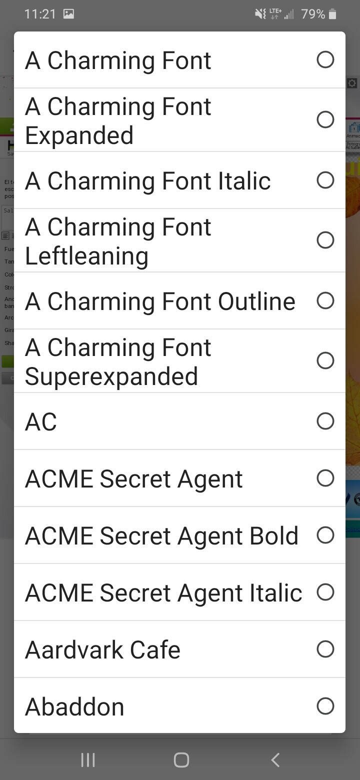 Tip: para salirse de esa ventana con las vistas previas de los fonts se le aprieta la “X” roja en la esquina de la ventana. Pero del cel a veces no funciona eso y toca escojer cualquier font para poder salirse de ahi.