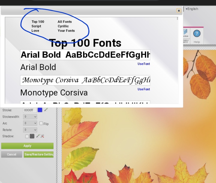 Donde dice “your fonts” dice que tenemos que estar “login in” o “inscritos” para subir nuestras imagenes. Pero YO no se como se pueda inscribir. Esas opciones Ignorenlas.