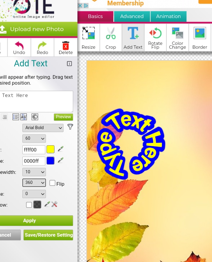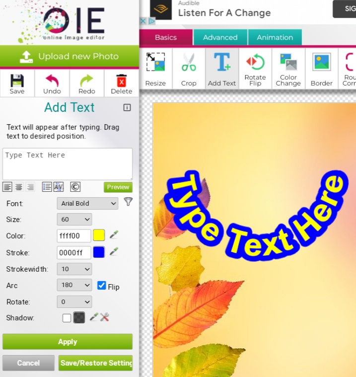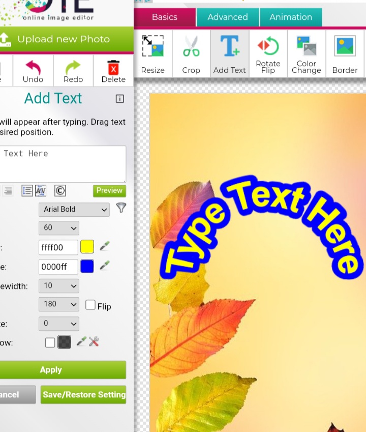 Si presionamos el 180 en la opcion, nuestro texto se dobla para formar un arco de 180 grados, quedando asi…