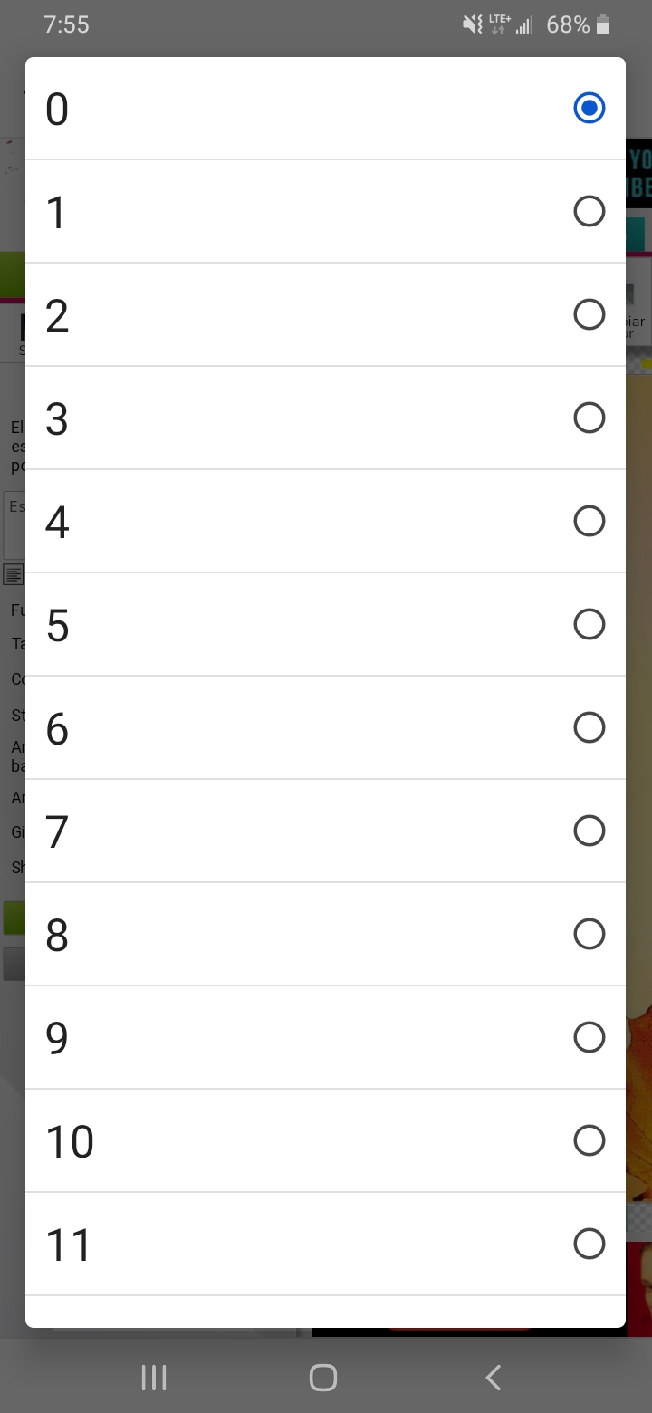 Si lo presionamos nos sale una lista de números del 0 al 359.