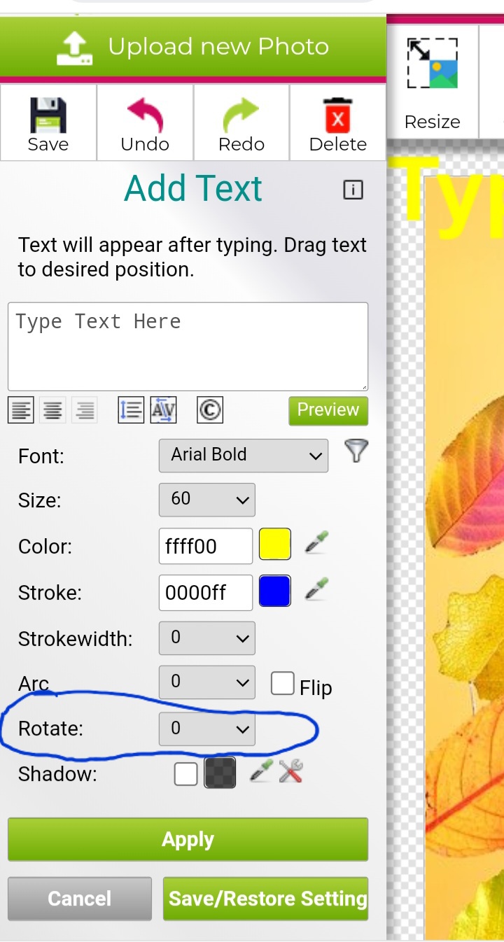 Como ven en la imagen, despues de donde dice Rotate/Girar esta un numero 0.