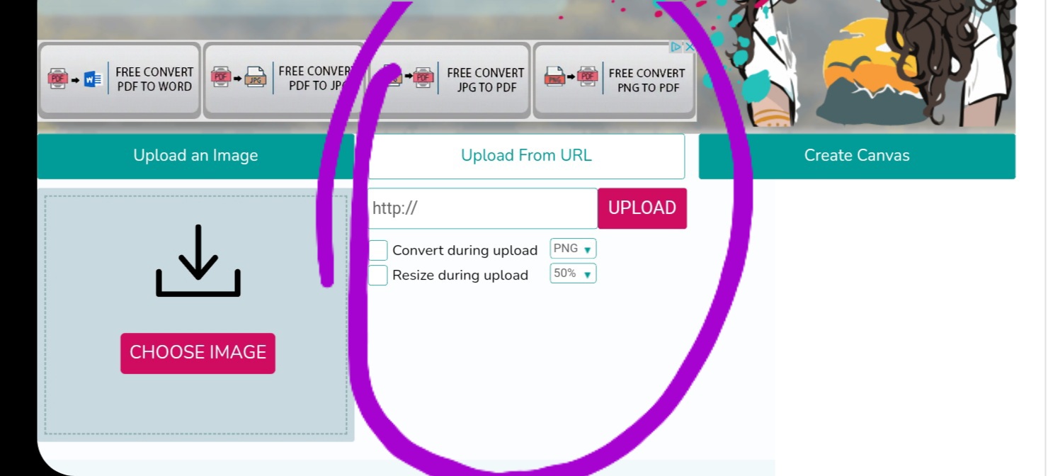 Si quieres subirla usando el URL o direccion de la imagen (enlace/link) . Presionas donde dice “Desde el URL” solo URL en celular o en ingles “Upload from URL”