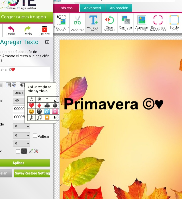 En este caso seleccion el copyright y el corazon y asi se ven.